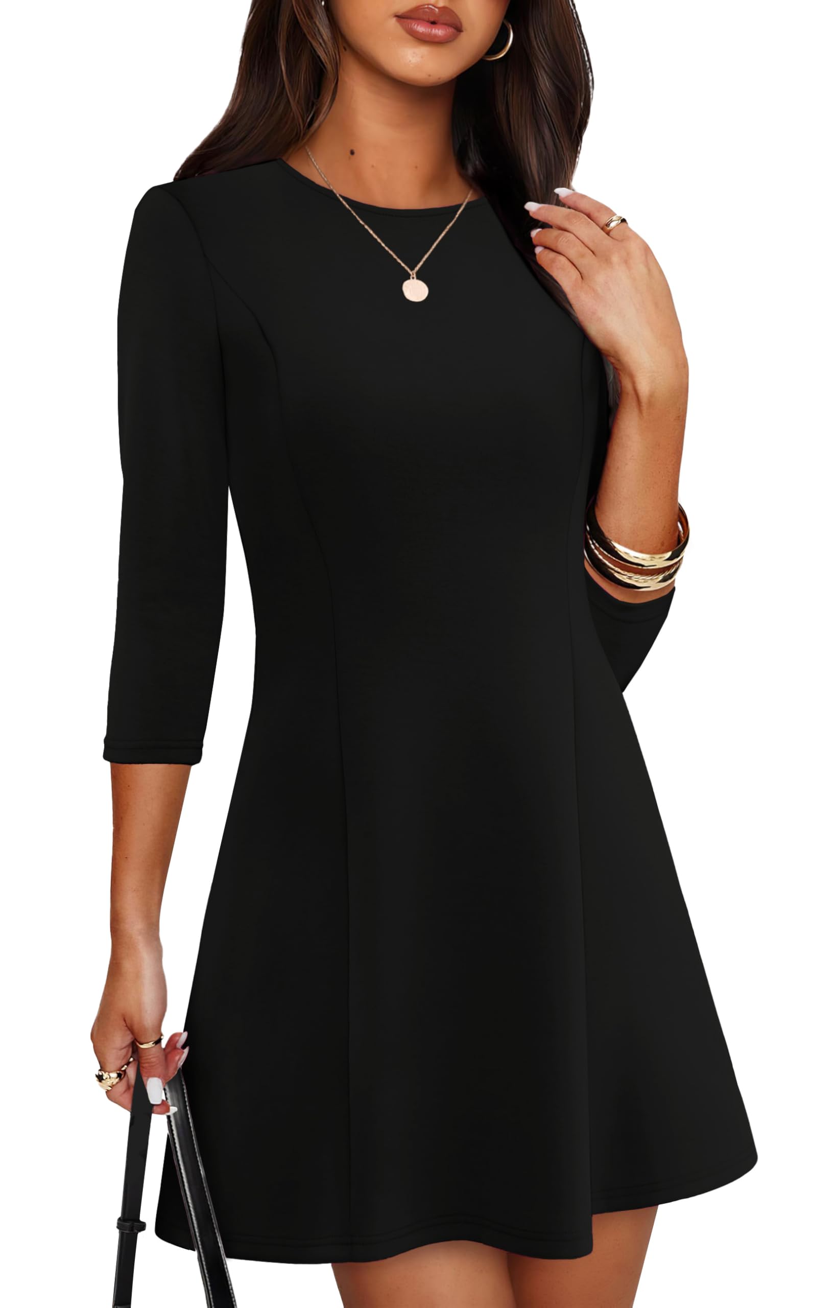 - Features: Classic A-line Mini Dress, 3/4 Sleeves, Boat Neck, Knee-length Length, Simple and Stylish Versatile Pieces.